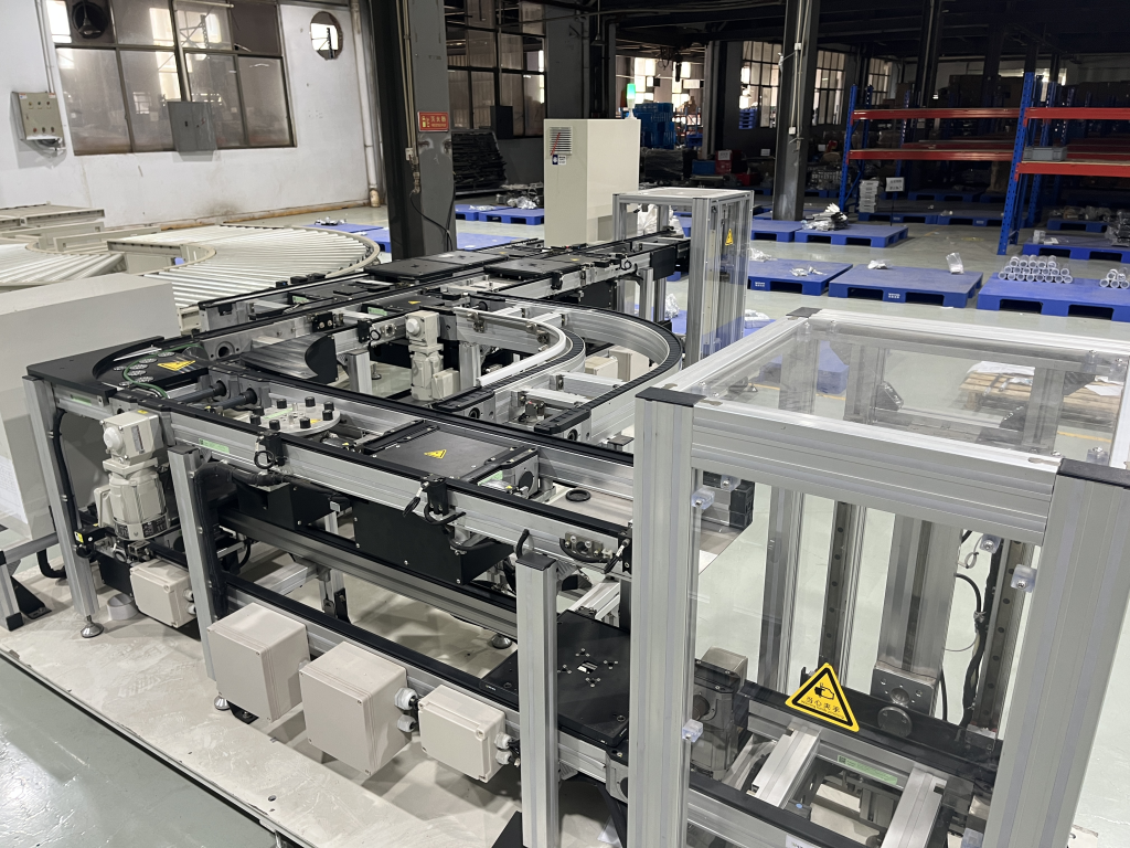 我们的托盘输送系统分为几大类别,包含平皮带输送线、同步带线和倍速链输送线,还有积放式滚筒线。不同类型的输送线可以满足各种物料的输送,从几公斤的小零件到上千公斤的重型设备,都能支持输送到位。