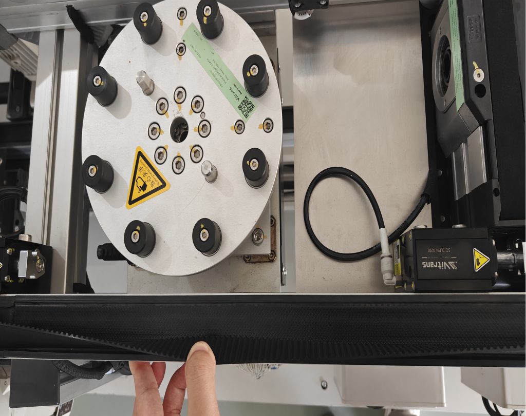 上面的皮带也叫齿形带。对于几公斤重的产品来说,同步带输送线是很好的选择。我们的同步带输送线,是采用了特制的齿形带,传动效率比普通皮带提高了30%。负载可以做到60公斤,输送起来非常的平稳。而且在成本控制上会比倍速链更有优势。