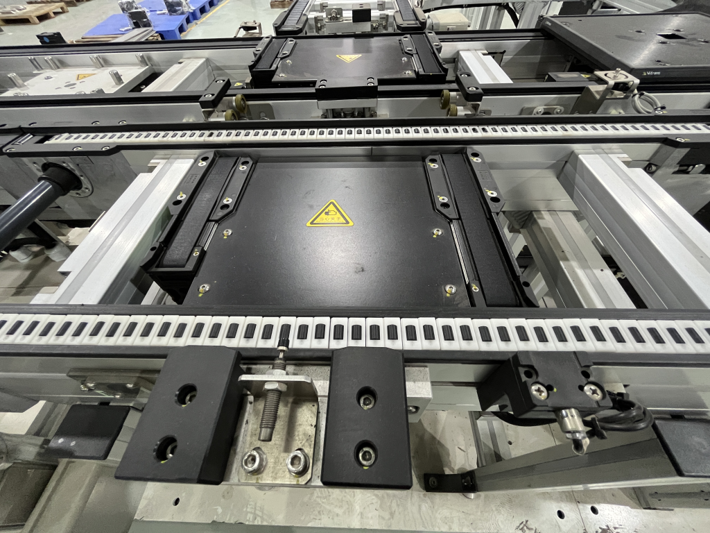 也就是我们的平皮带输送线。主要采用尼龙材质的皮带,有很高的耐磨性,能够承受较大的摩擦和磨损,非常适合长期接触托盘使用。和普通皮带不一样,它还有抗静电功能和很强的抗拉伸性,可以在高速运转的情况下稳定输送。搭配工装托盘,可以用于自动化运输和分拣线,在汽车电子、物流、仓储、制造业等领域都能用上。
