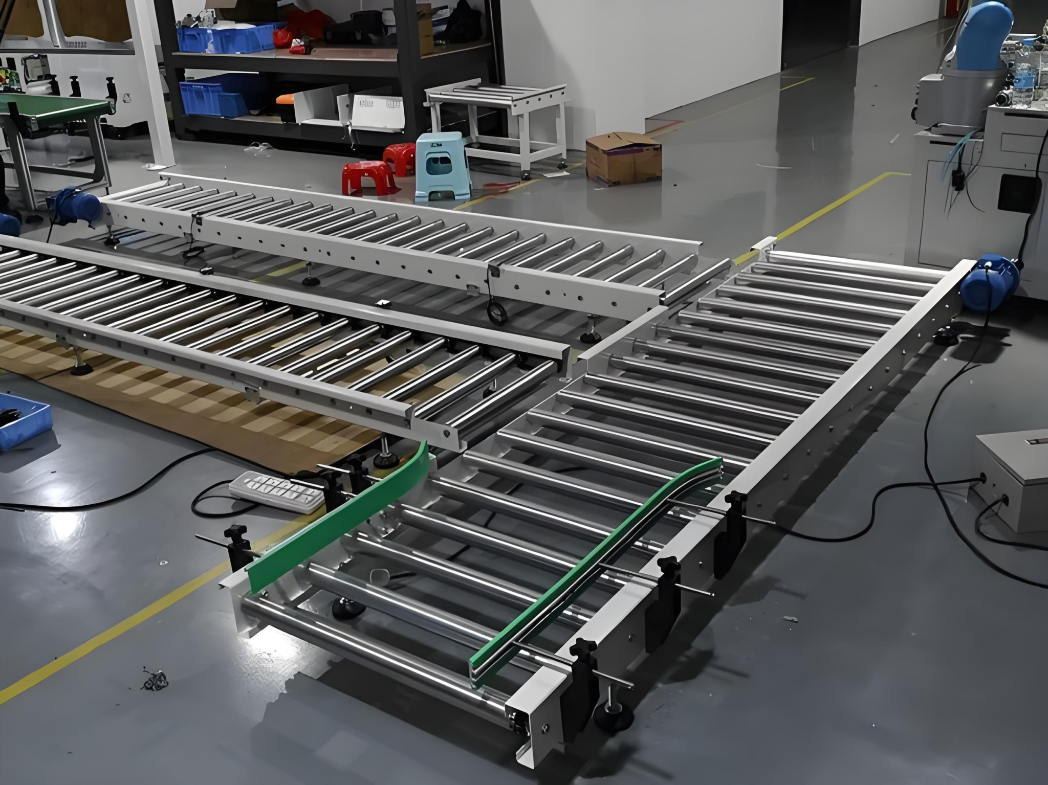 再聊聊大家都关心的维护和结构,这俩在实操中都挺关键的。滚筒输送机的框架用的是高强度铝型材,拆装其实挺方便的,虽说涉及链条、轴承这些部件,但只要是标准化设计,日常维护也不用太专业的技术,配件更换和设备调试都算省心。皮带输送机的主体是4080铝型材,整机更轻,端驱动的设计还特别省空间,易损件主要就是皮带和滑轮,更换起来很简单,维护的门槛会更低一些。