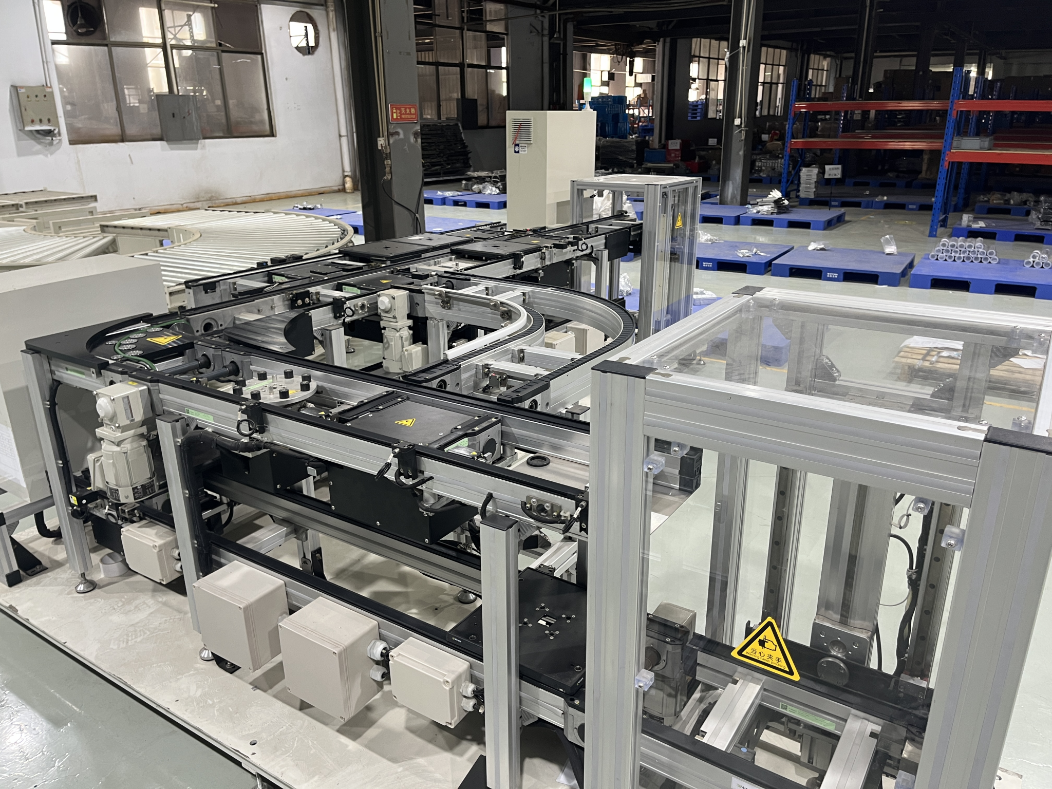 而在实际生产的使用场景里,二者的适用边界也分得很清。同步带传动精准还能换向,天生就适合6米以下的短距离输送,在干燥洁净的生产环境里用起来格外顺手,轻负载、需要频繁换向的工位布局,选它准没错,小型托盘的短程流转靠它就能跑起来;平皮带靠摩擦传动的特性,更适合2米以上的长距离输送,同样要求干燥洁净的环境,主打一个轻负载下的平稳输送,只是单向运行的特性,让它更适合固定流向的长距离生产线,承载能力上的优势也让它能应对更重的托盘负载。